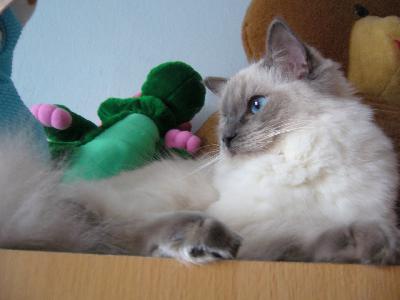 Ragdoll je velice společenské plemeno,mírné a klidné povahy.Má rádo lidskou a zvířecí společnost.Není agresivní.Naše kočička umí aportovat hračky jako pejsek.